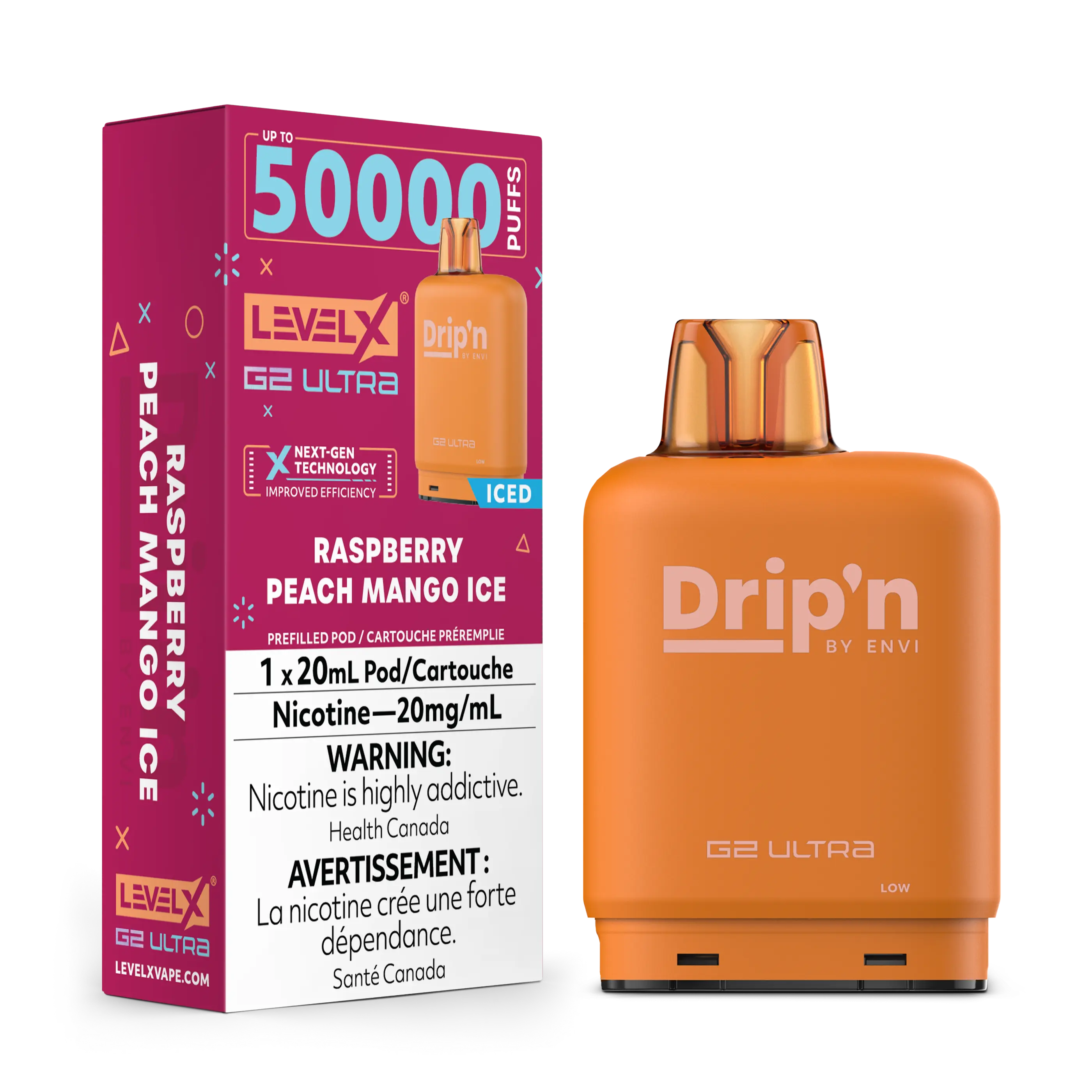 Flavour Beast DRIP'N G2 Ultra 50K POD (20ML) - Raspberry Peach Mango Ice